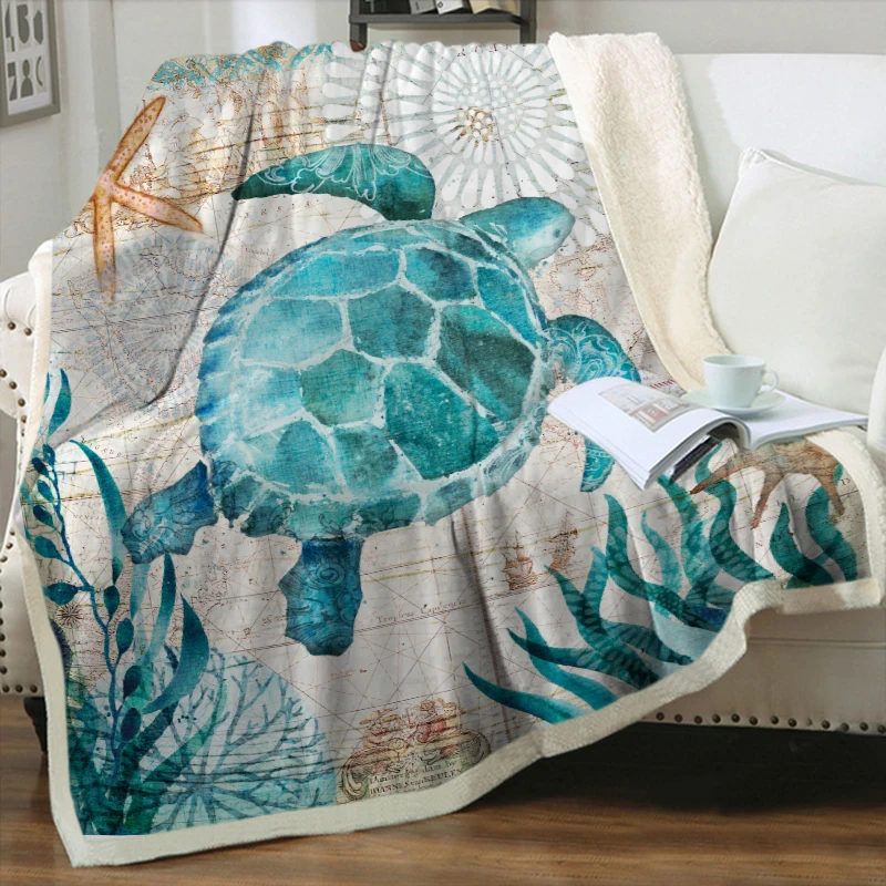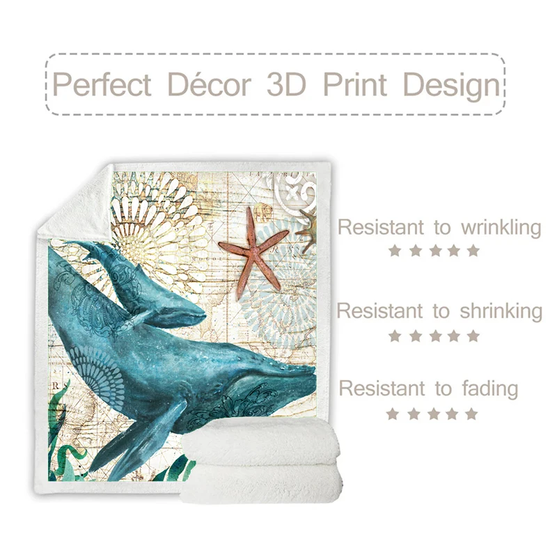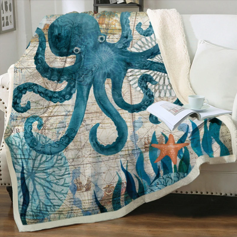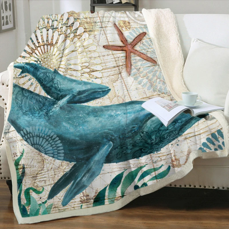 Плюшевое одеяло с 3D принтом морских животных, шерпа, флисовое покрывало, винтажное постельное белье, квадратное шерстяное мягкое одеяло для пикника