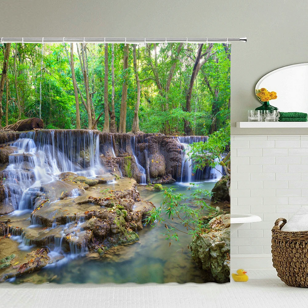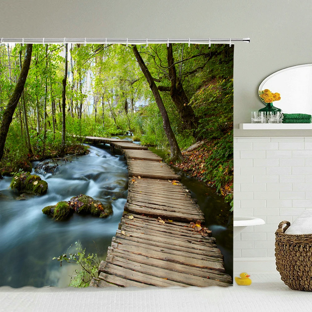 Лесной природный пейзаж, занавески для душа, высокое качество, водо...
