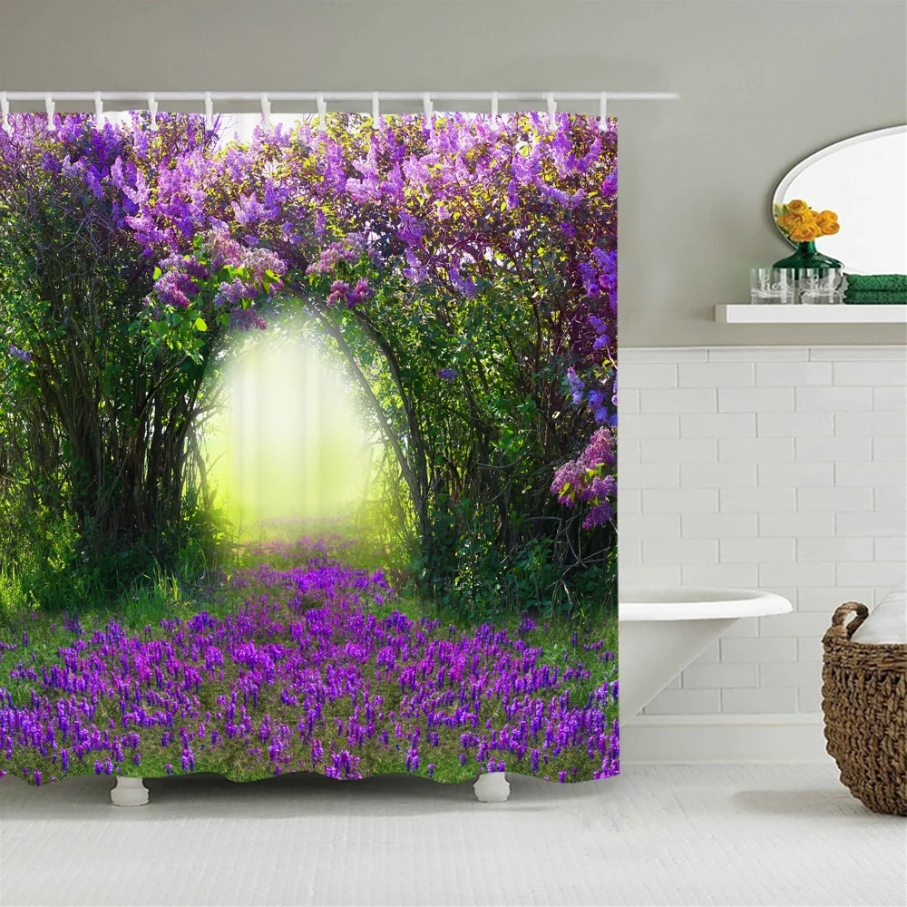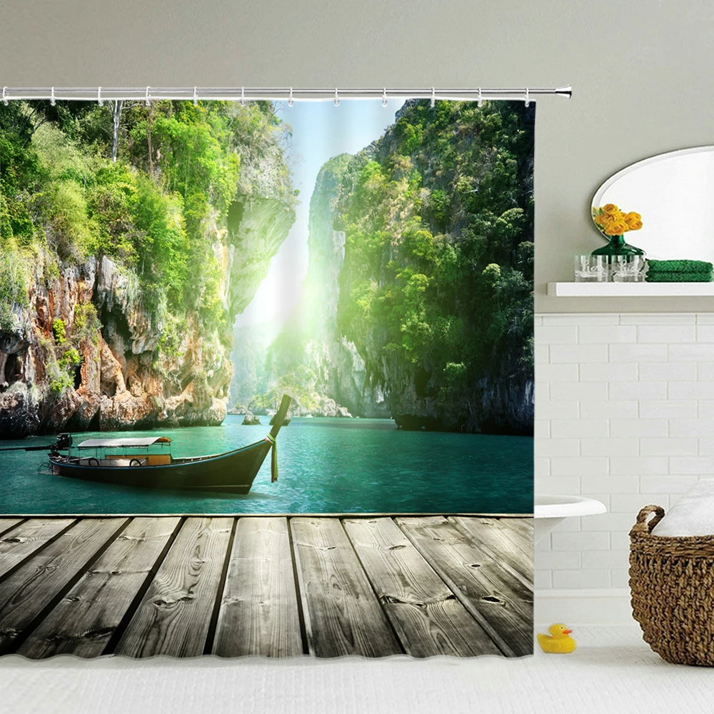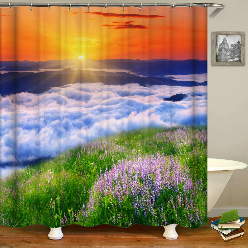 Высококачественная моющаяся душевая занавеска с природным пейзажем,...