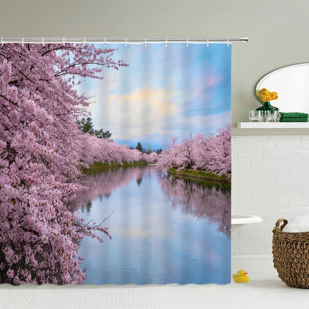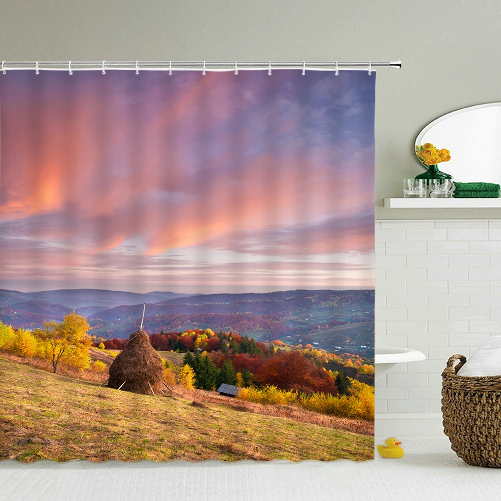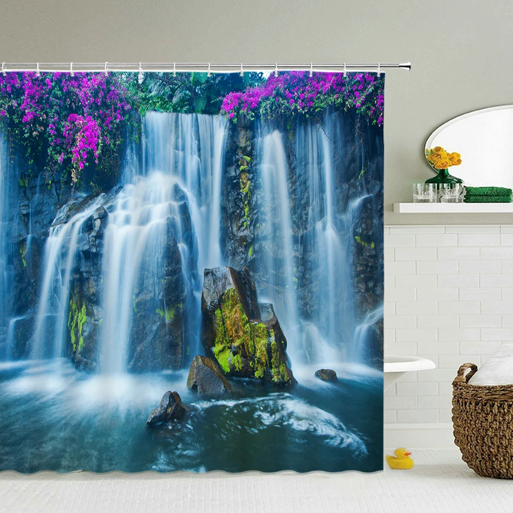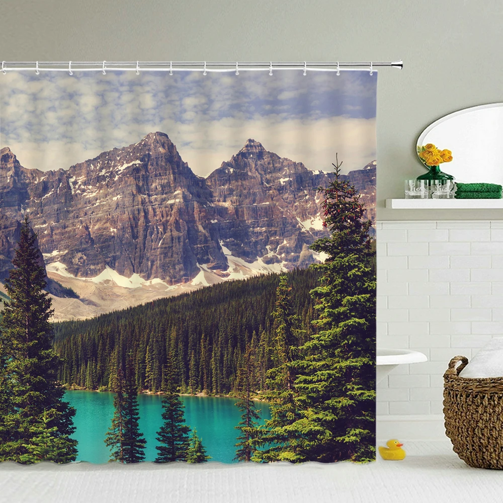 Высококачественная моющаяся душевая занавеска с природным пейзажем,...