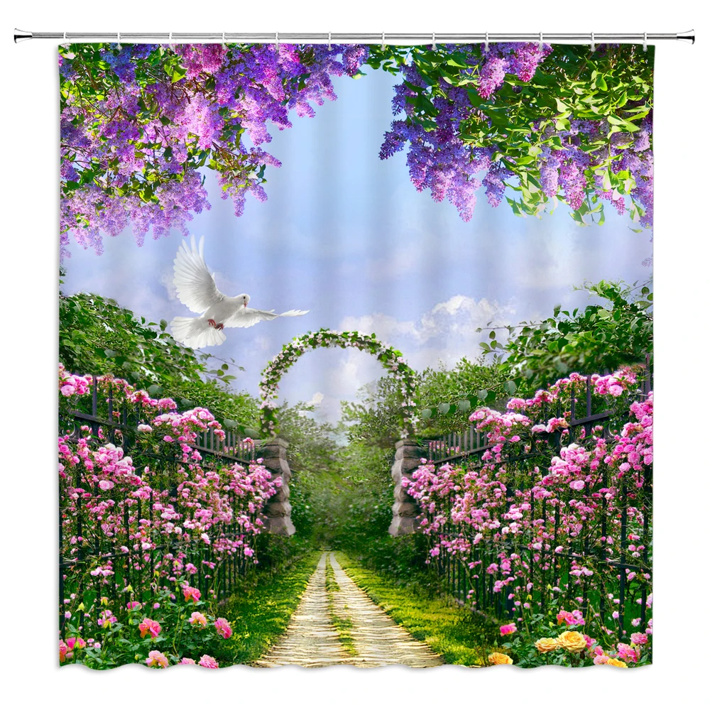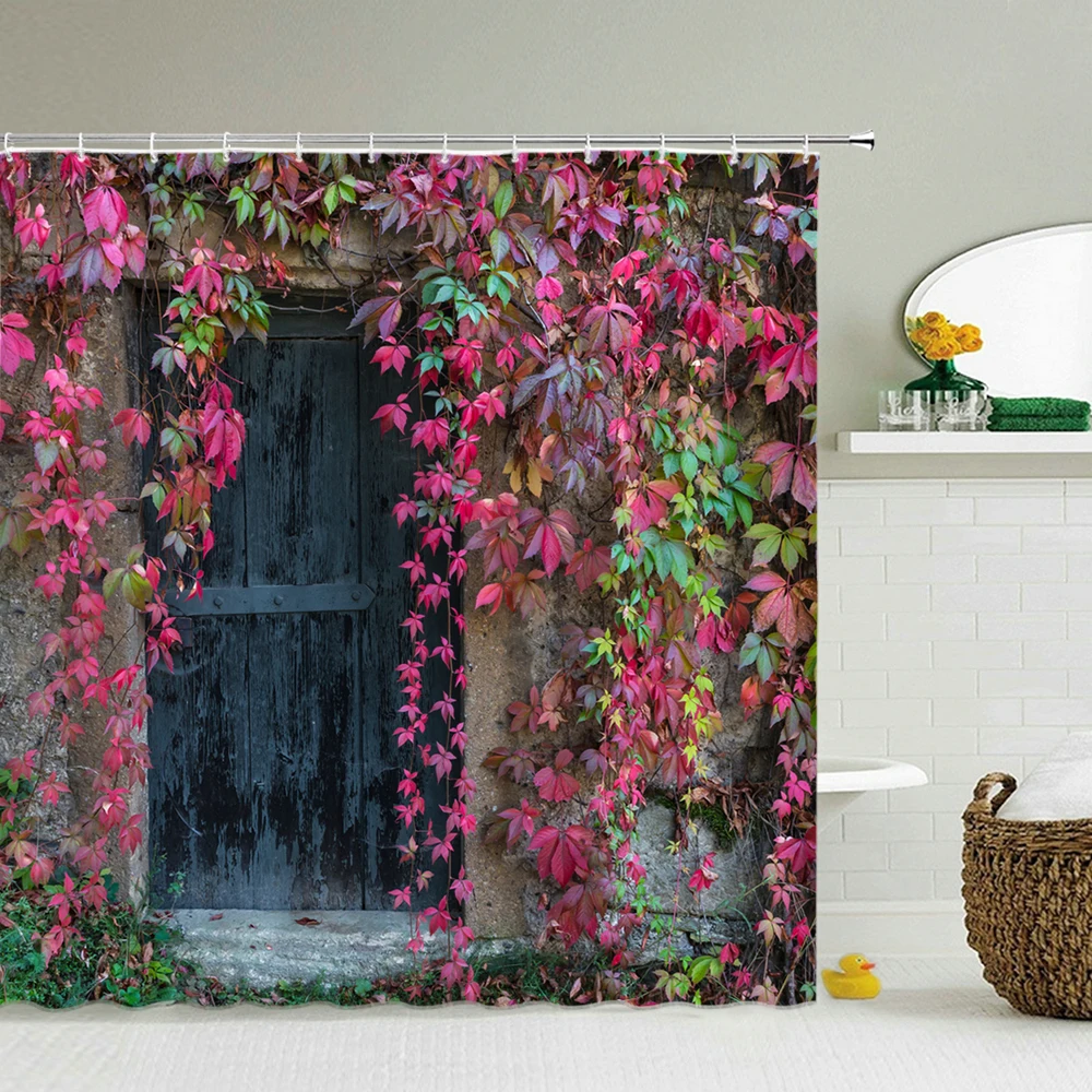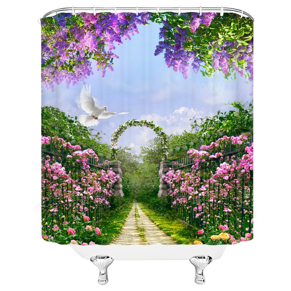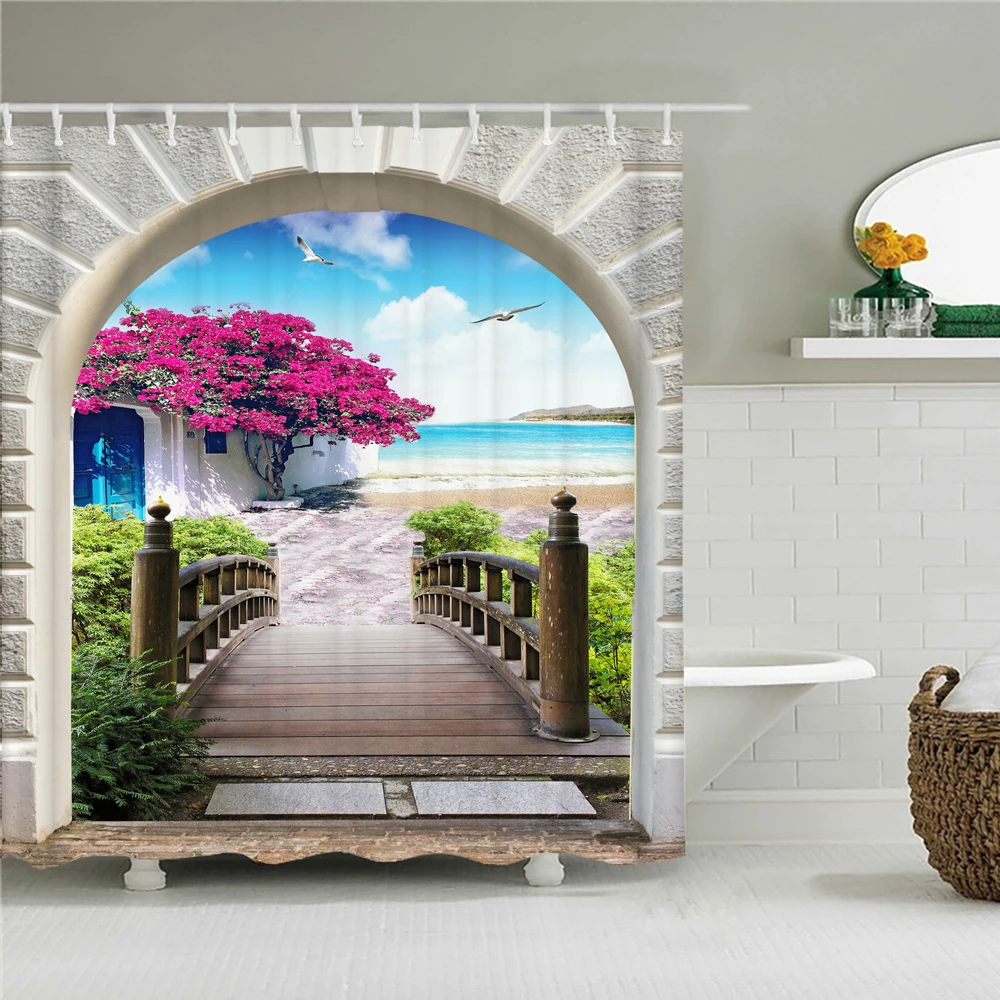 Занавеска для душа с изображением сельского сада, уличная каменная ...