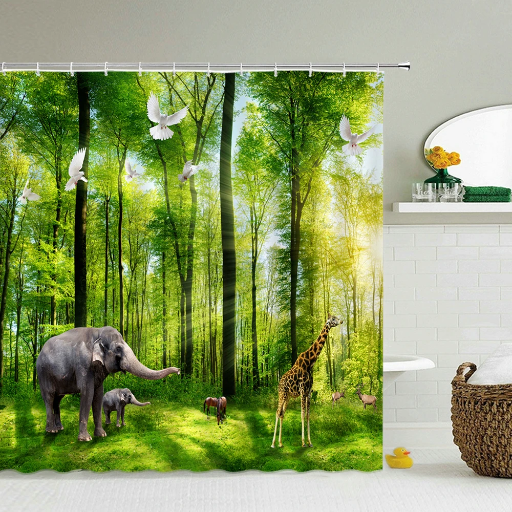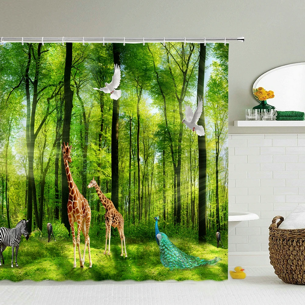 Водонепроницаемая 3d-штора для ванной комнаты с рисунком леса, штор...
