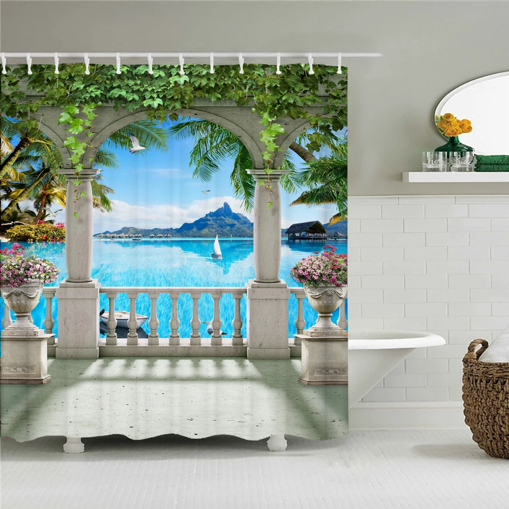 Водонепроницаемая шторка для душа с изображением морских пальм
