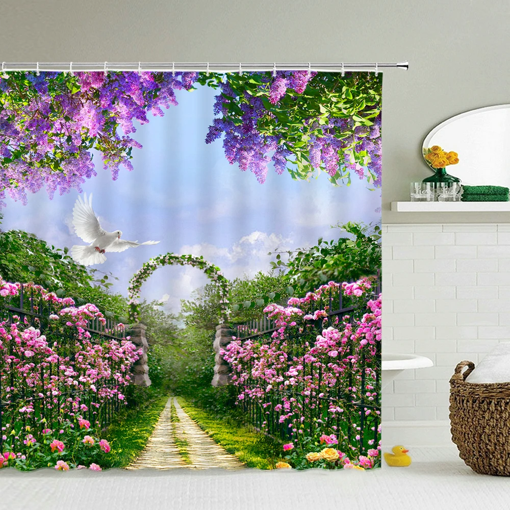 Водонепроницаемая занавеска для душа из полиэстера с 3D цветами