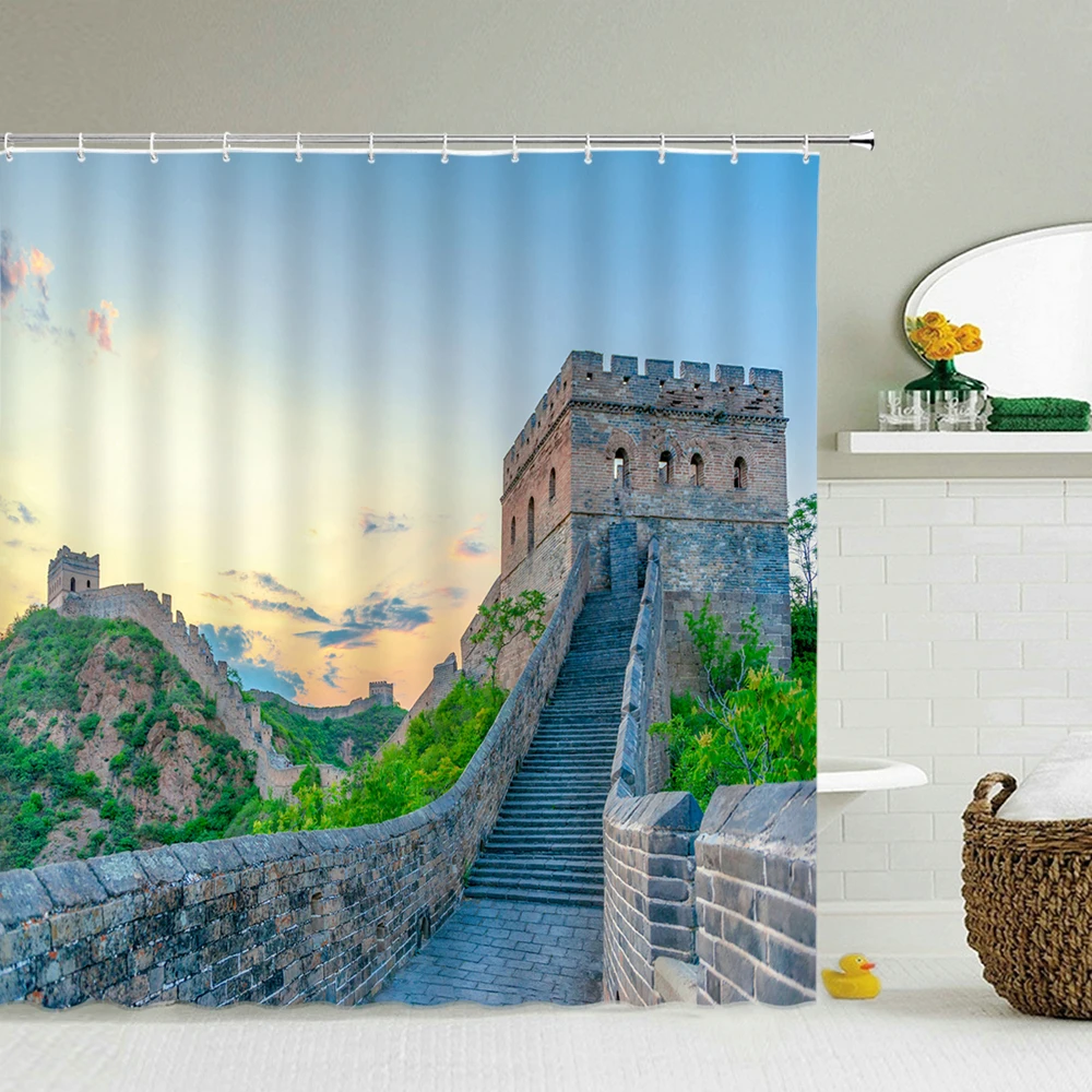 Китайская Ландшафтная занавеска для душа, Полиэстеровая Водонепрони...