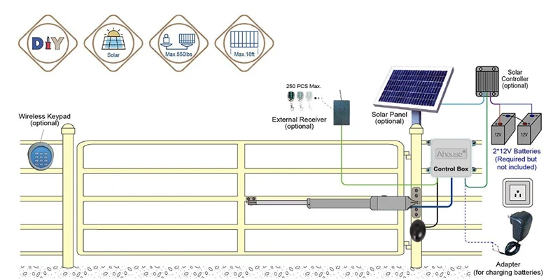 KINJOIN 200kgs автоматический одноповоротный автоматический набор для открывания ворот подходит для открытия ворот/ворот на солнечных батареях