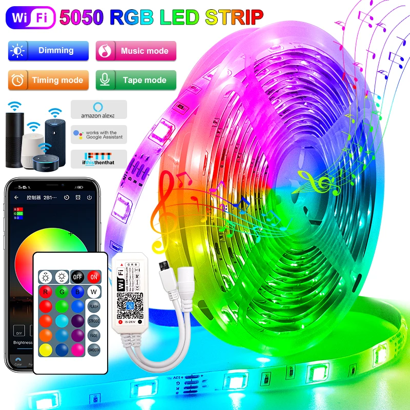 Светодиодные ленты светильник RGB WI-FI SMD 5050 лента Гибкая Водонепроницаемый лампы Диод дистанционного WI-FI музыка