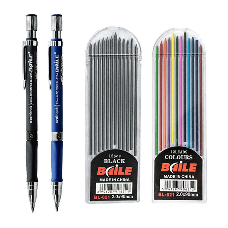 Студенческий механический карандаш 2,0, художественная живопись, автоматический карандаш для детей, для письма, рисования, рисования, черные заправки, канцелярские принадлежности