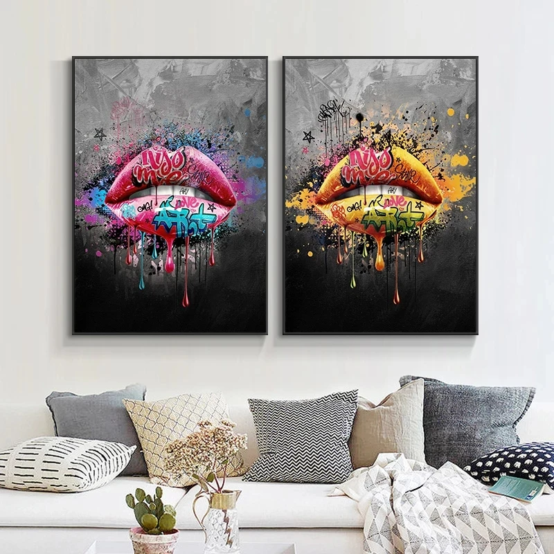 Граффити искусство поп-улица девушка сексуальные губы Холст Живопись стены Искусство плакаты печать стены картины для спальни дома Настенный декор