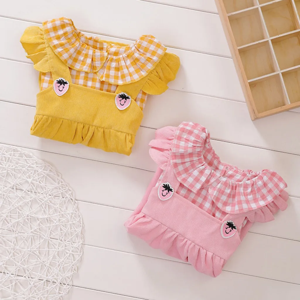 Весеннее платье в клетку с оборками для маленьких девочек повседневная одежда