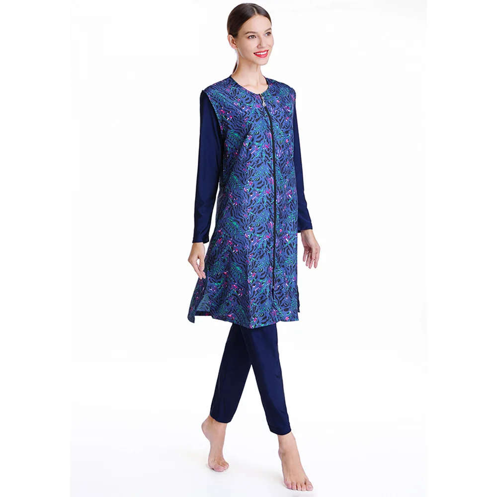 Летнее мусульманское платье, брюки, Буркини, купальник с принтом, одежда для плавания и серфинга, спортивный полноразмерный костюм для плавания, комплекты из 3 предметов, мусульманские купальники для женщин