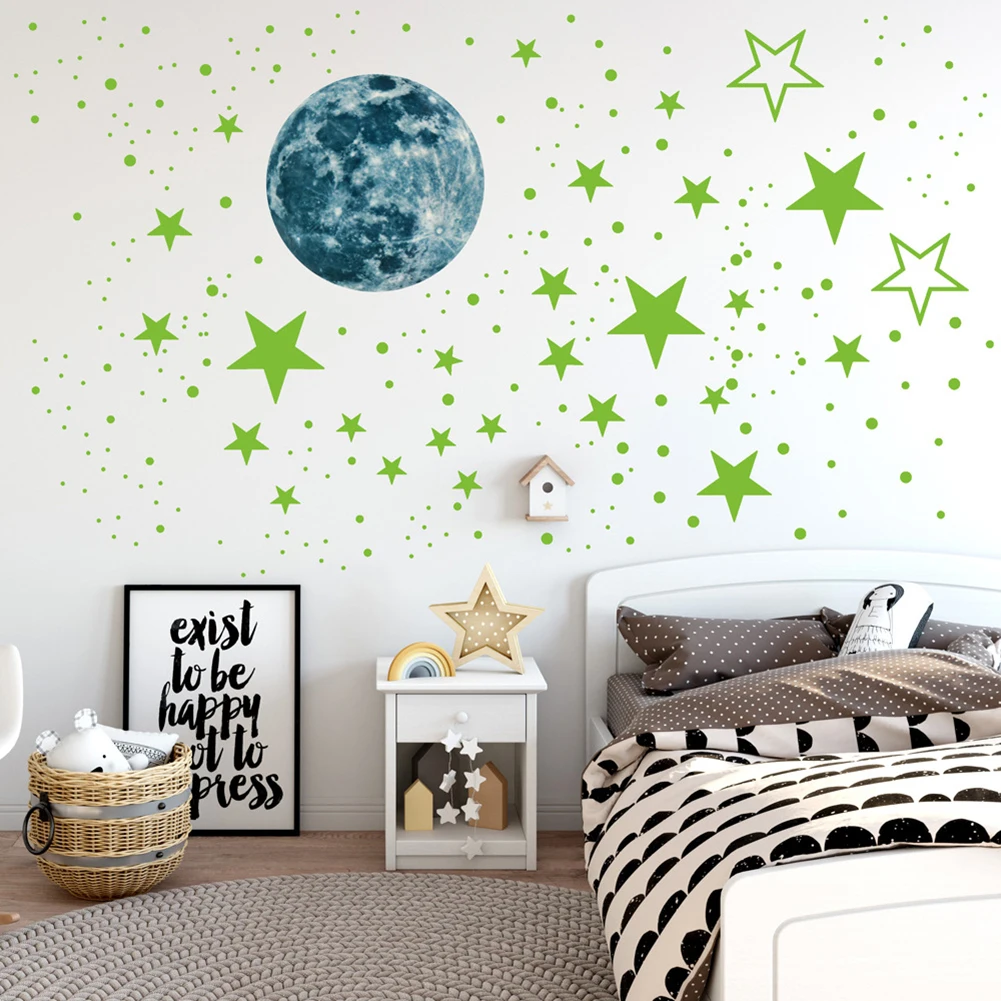 435 шт./компл. светящиеся 3D Звезды Луна точка настенные наклейки детская комната спальня потолочное украшение для дома флуоресцентный светится в темноте DIY наклейки