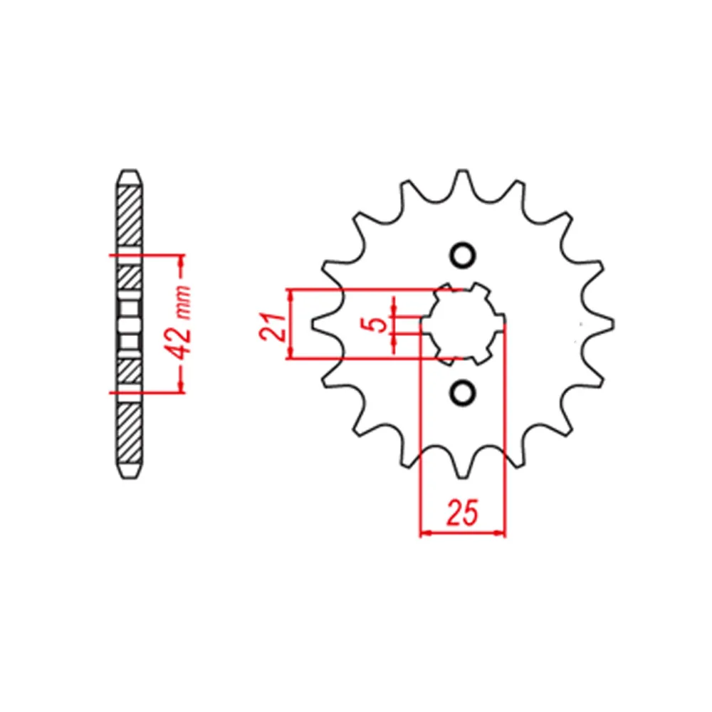 Описание товараМатериал: сталь 45 #Устойчивость к истиранию в 3 раза выше, чем у обычной звездочки.РазмерыМатериал: 45 #Размер установки: 21*25 ммКоличество внутренних зубов: 6Количество внешних зубов: 520-13 зубьевОбщая толщина: 5 мм
