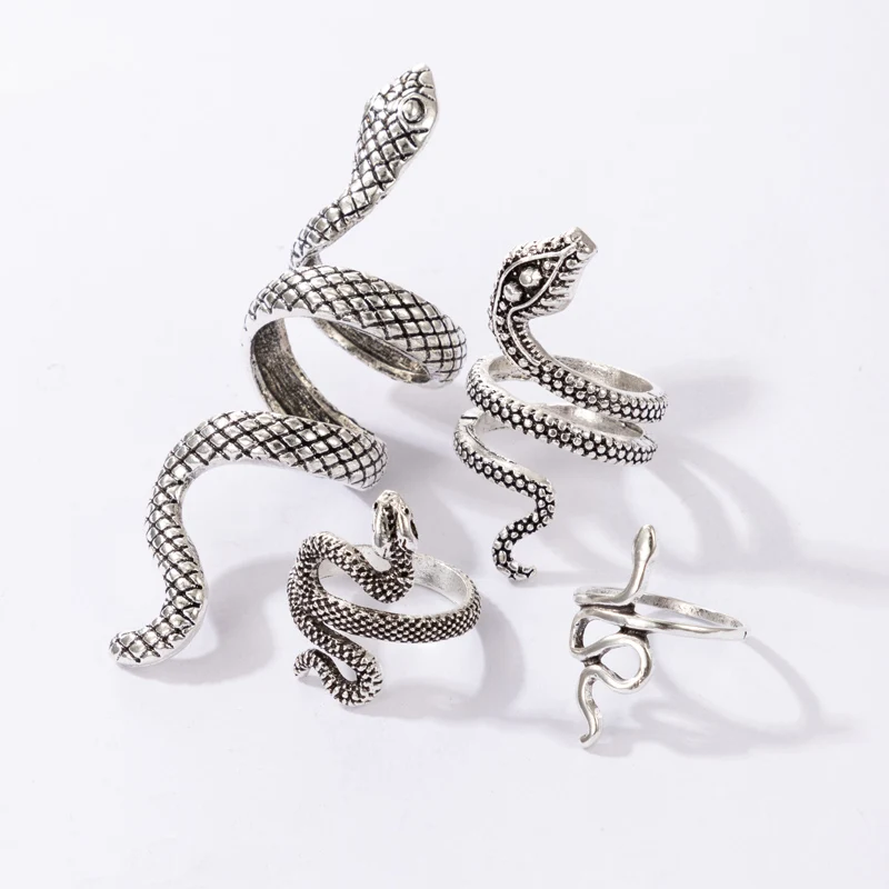Кольцо женское в виде змеи, 4 шт.компл., в готическом стиле, серебр...