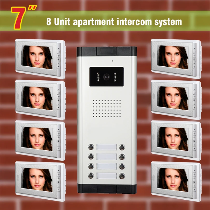 8 единиц Квартира видео домофон Системы 7 дюймовый монитор видео-телефон двери дверной звонок для квартиры visaul вход системы внутренней телефонной связи Системы