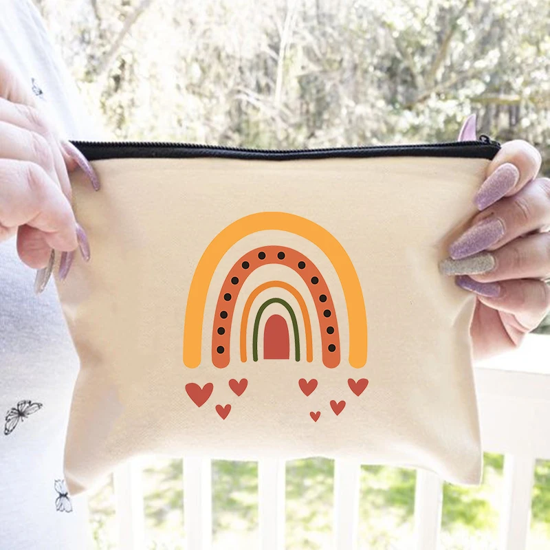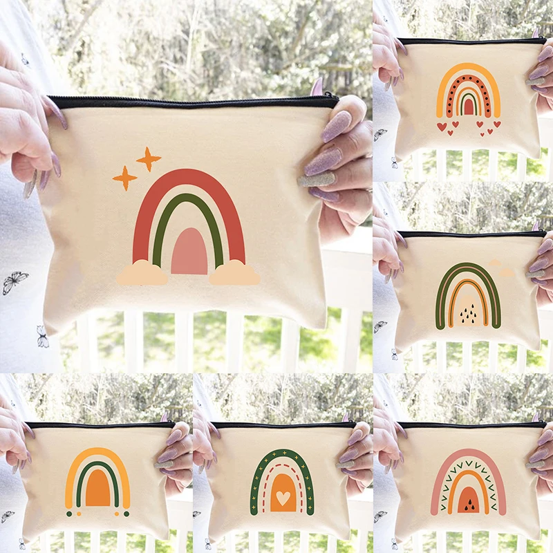Холщовая Женская дорожная сумка для хранения с радужным принтом, органайзер для туалетных принадлежностей, милый косметический Чехол, портативная Косметическая Пенал-сумочка, лучший подарок