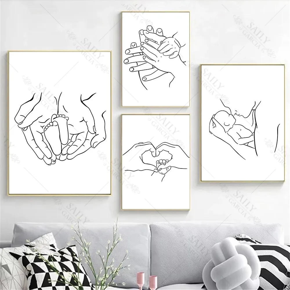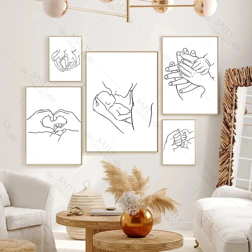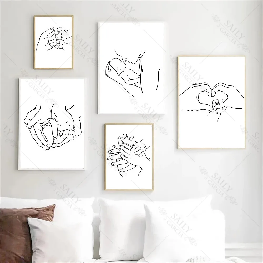 Семейный портрет, принт для мамы, ребенка, фотообои, художественные принты, линия, рисование, плакаты, настенные картины, декор для гостиной