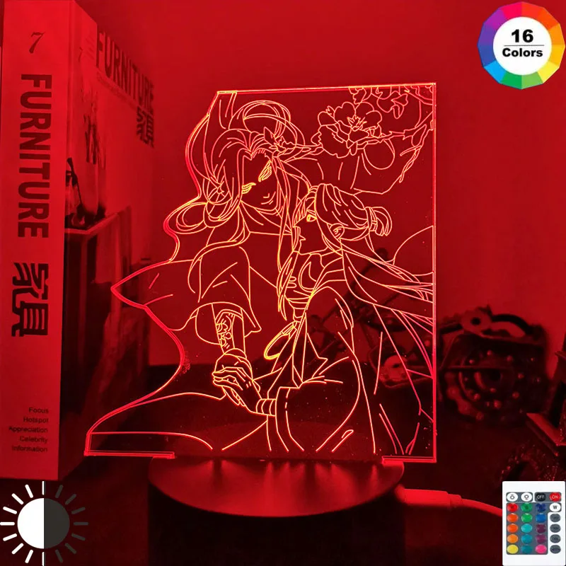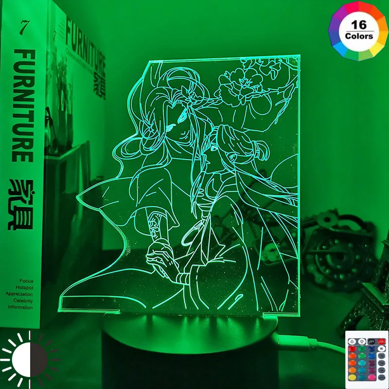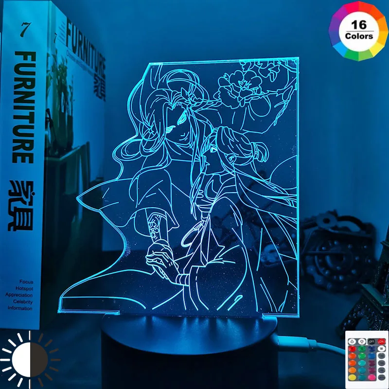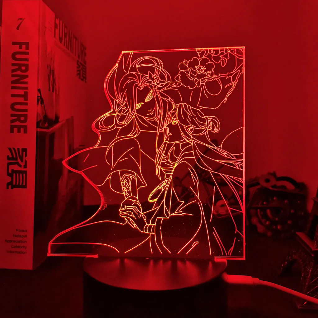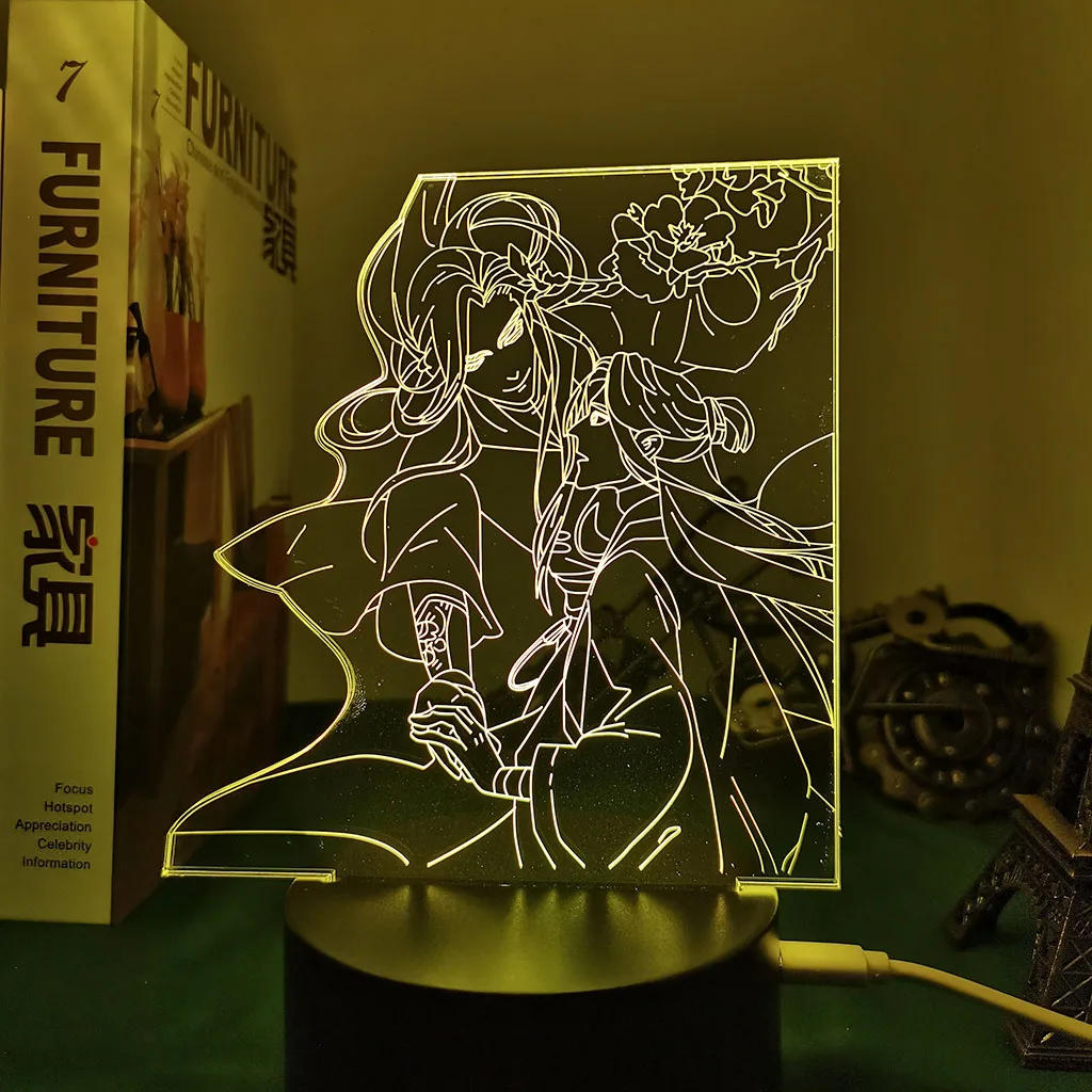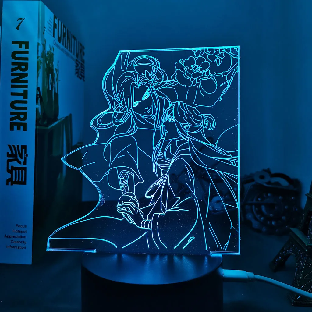 Светодиодный светильник с аниме Tian Guan Ci Fu для спальни, Декор, ночник, подарок на день рождения, 3d светильник BL манга TGCF для комнаты, небесный официальный светильник Blessin