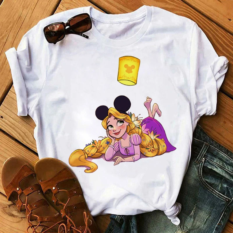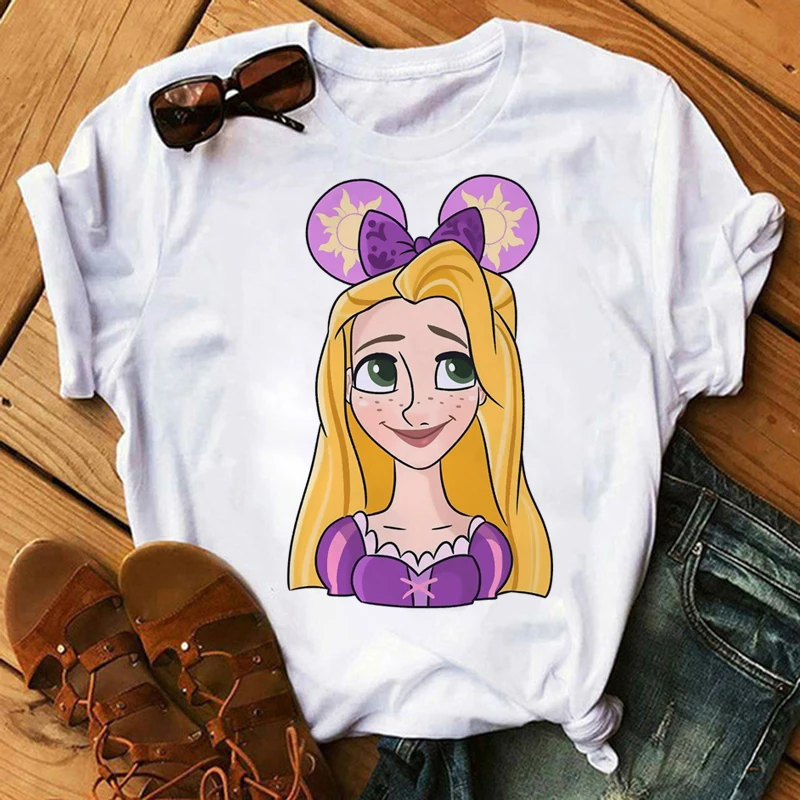 Футболка Kawaii с изображением Принцессы Диснея, женские Мультяшные ушки Микки, Белоснежки, графические футболки, гранж, унисекс, Харадзюку, женская футболка