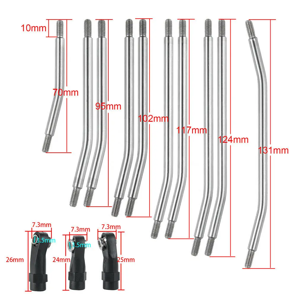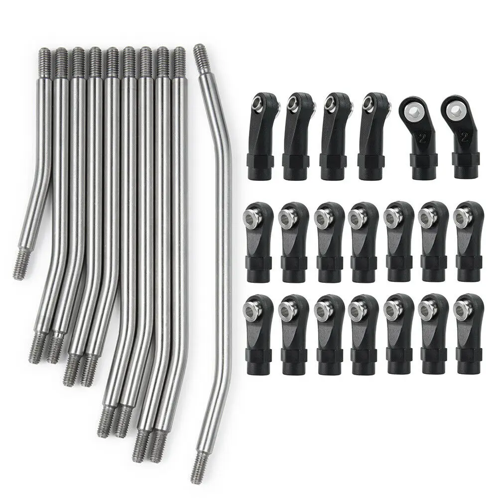 Комплект соединительных звеньев рулевого стержня из нержавеющей стали, амортизатор колесной базы 313 мм для 1:10 SCX10 II 90046, деталь для обновления радиоуправляемого гусеничного автомобиля