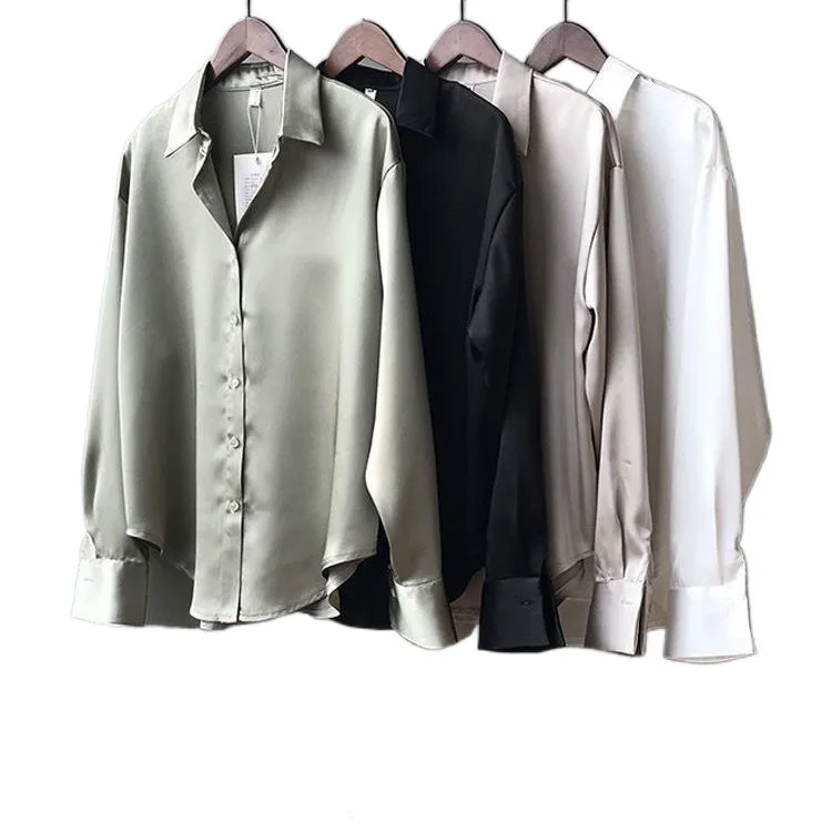 Женская атласная рубашка, с длинным рукавом и пуговицами спереди