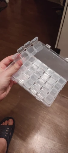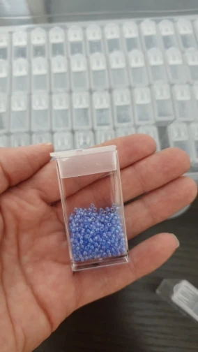Заказывала 64 ячейки, 5 из них были треснутые, в подарок 65 не положили, ожидала большего размера, ячейка вмещает ~12г бисера, доставка быстрая, всего 5 дней