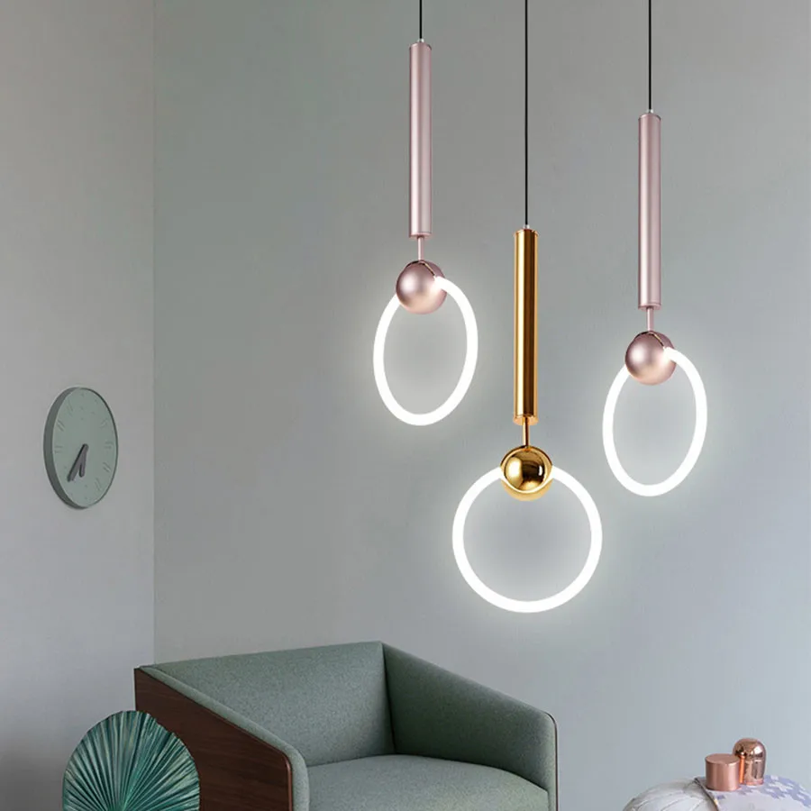 Современный простой подвесной светильник с кольцом, индивидуальный Железный художественный декор для столовой, гостиной, кабинета, Подвесная лампа