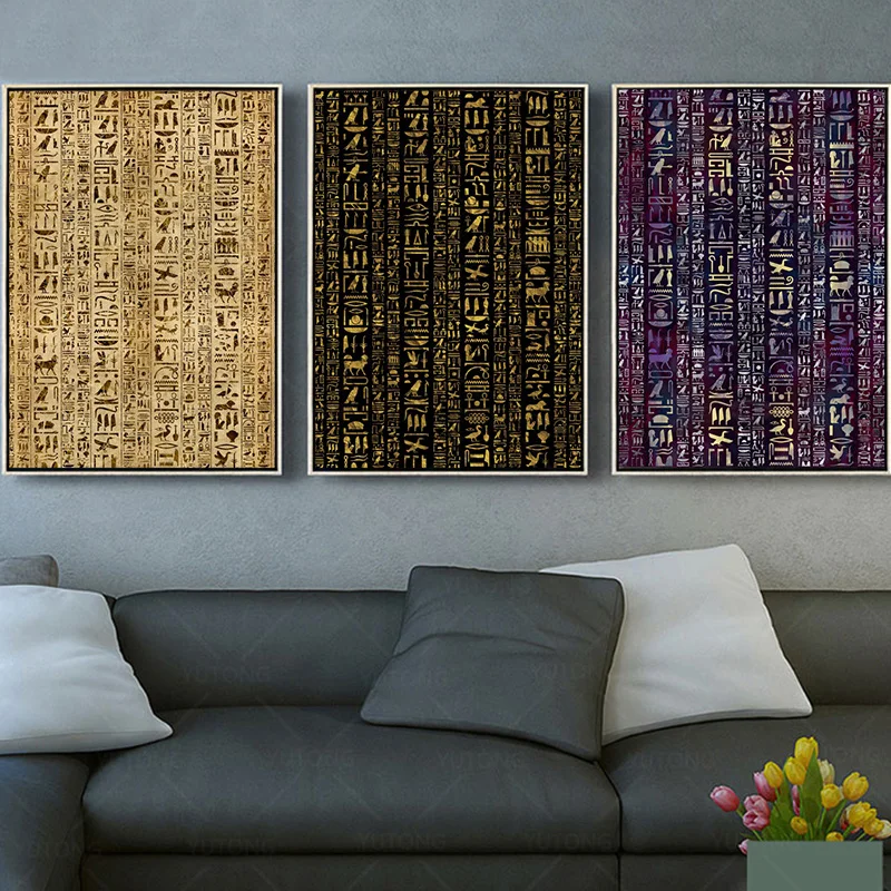 Абстрактные Древние египетские иероглифы для письма культуры египетской культуры скандинавский художественный постер на холсте домашний настенный Декор Рамка