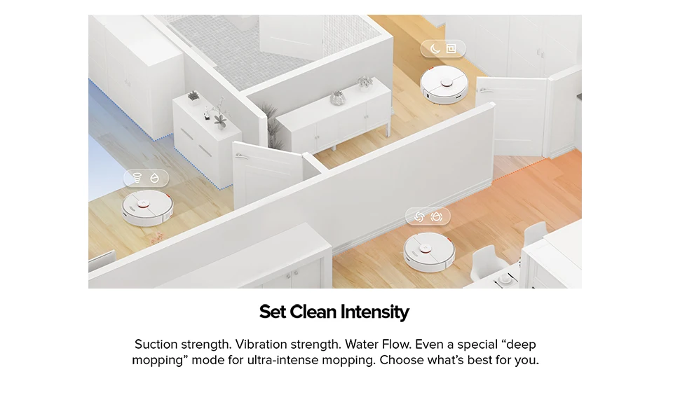 Сила всасывания, сила вибрации, поток воды, даже специальный режим «глубокой мытья» для сверхинтенсивной мытья. Выберите то, что лучше для вас.