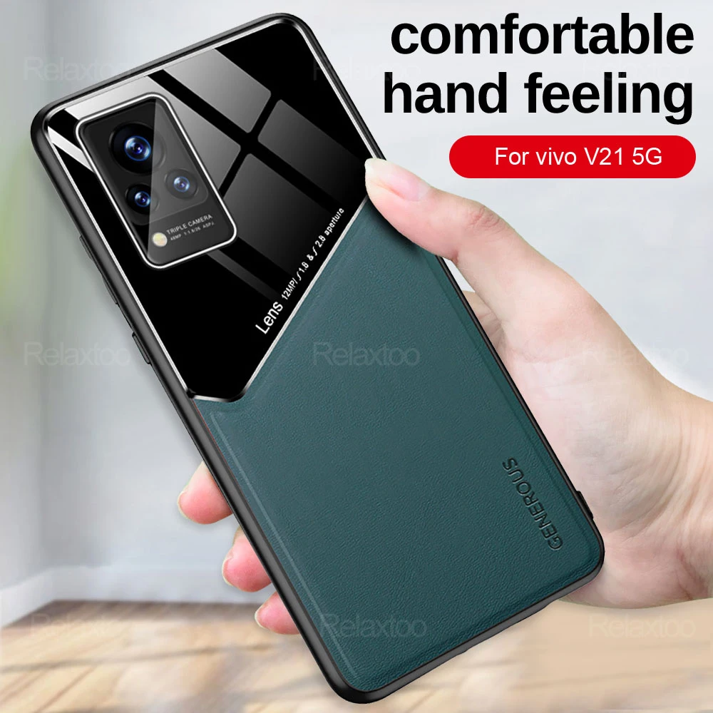 Роскошный кожаный Защитный ЧЕХОЛ ДЛЯ Vivo V21 4G 5G 6,44 дюймов vivi v21 v 21 5g4g VIVO V21 5G V21 4G Автомобильный держатель телефона Магнитный чехол на заднюю панель