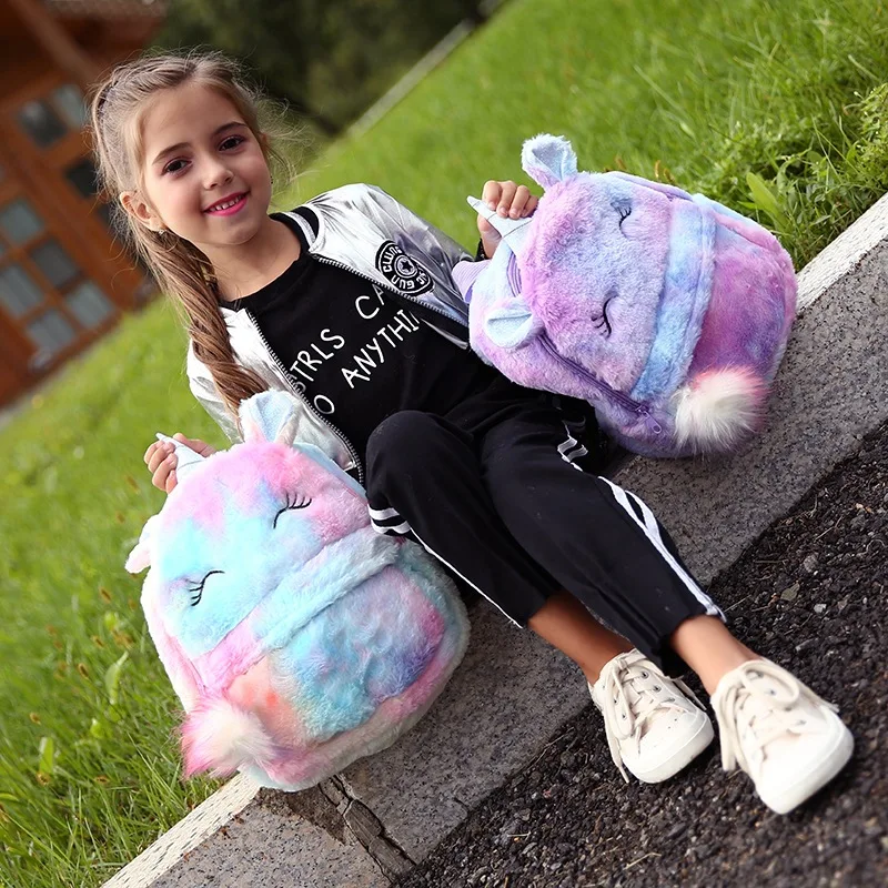 Милый мультяшный рюкзак для девочек, плюшевые рюкзаки с единорогом,...