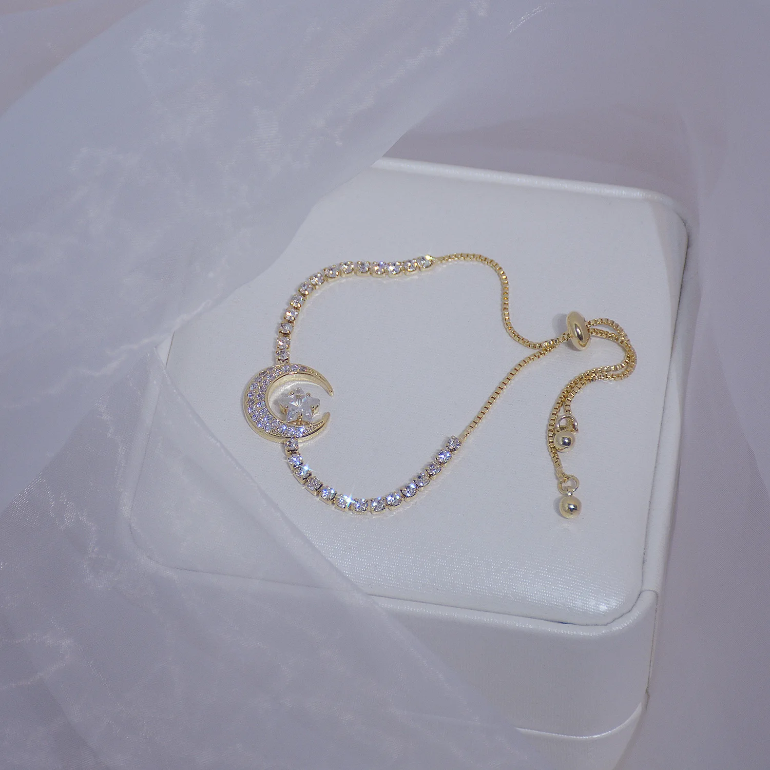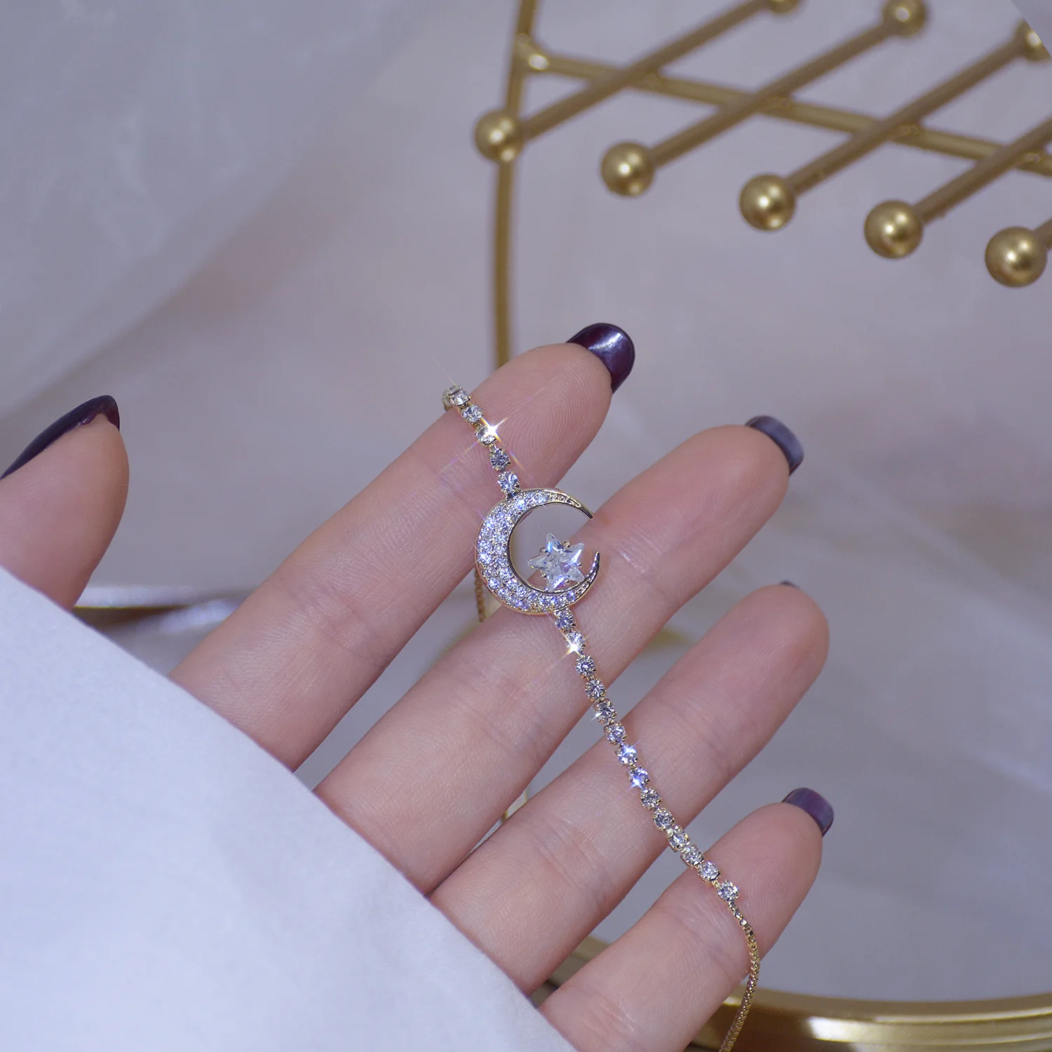Новое поступление, элегантный циркониевый браслет QWC с Луной и звездой, медное позолоченное покрытие для женщин и девушек, милый подарок, винтажные очаровательные модные ювелирные изделия