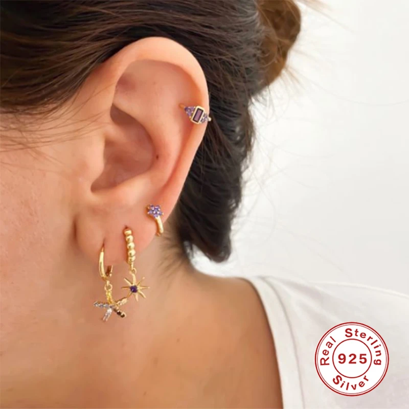 Автоклав S925 Стерлинговый Серебряный Пирсинг Серьга оранжевый циркон любящее сердце бабочки серьги-гвоздики летние украшения Серьги Brincos, можно носить