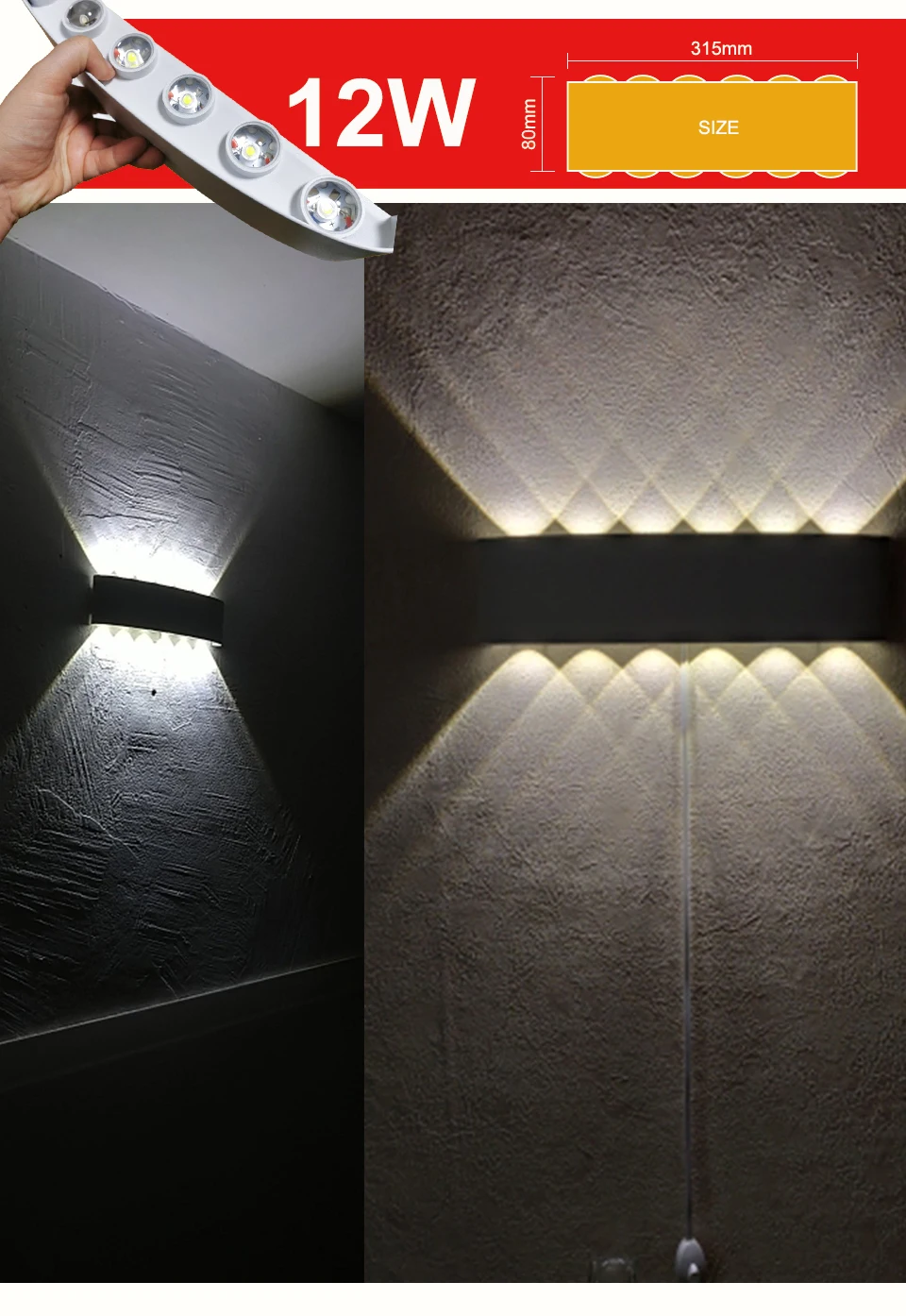 IP65 светодиодный настенный светильник на открытом воздухе Водонепроницаемый садовый светильник ing Алюминий AC85-265 Крытый Спальня бра Гостиная лампа Лестницы настенный светильник