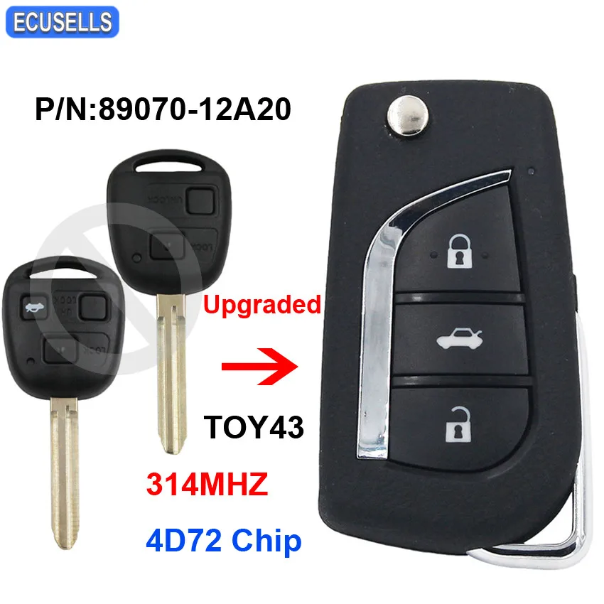 Модернизированный дистанционный ключ-брелок от машины 314 мгц 4D72 чип для защитные чехлы для сидений, сшитые специально для Toyota Corolla 2012 2013 2014 2015 PN: 89070-12A20 TOY43 необработанное лезвие