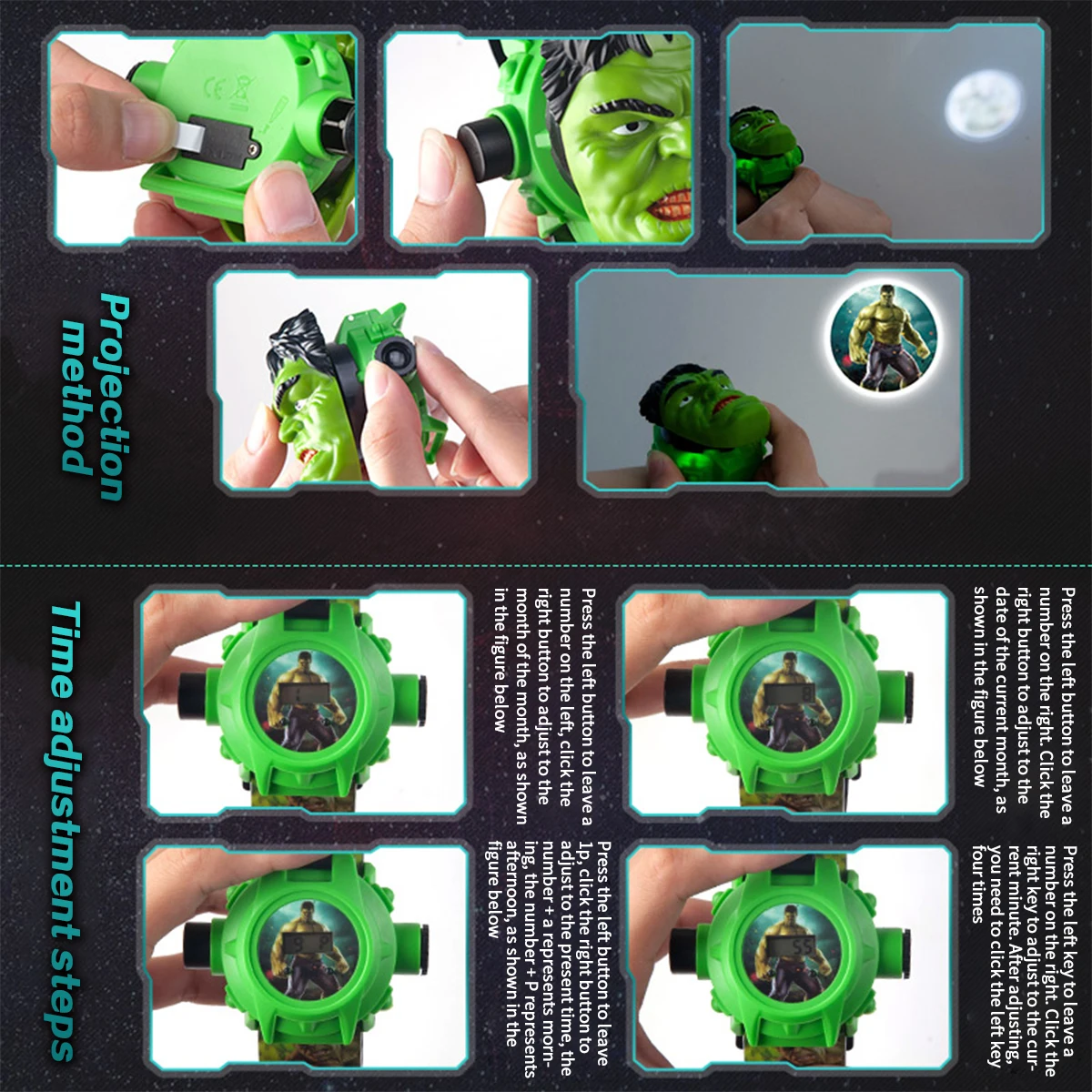 Часы детские цифровые с 3d-проекцией, Человек-паук, Железный человек