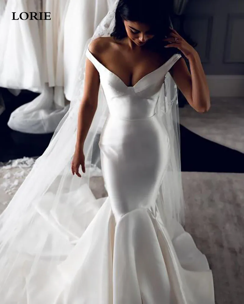 LORIE атласные свадебные платья-русалки с открытыми плечами сексуальные платья для невесты с длинным шлейфом белое цвета слоновой кости свадебное бальное платье 2021