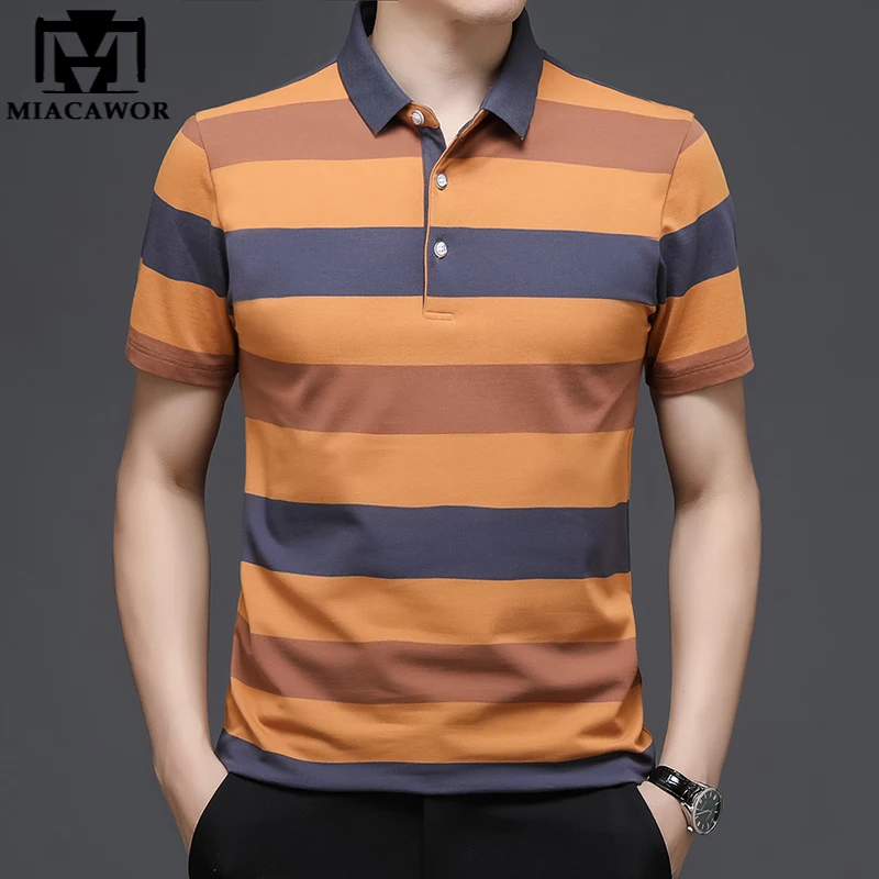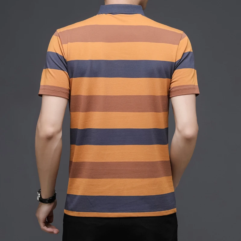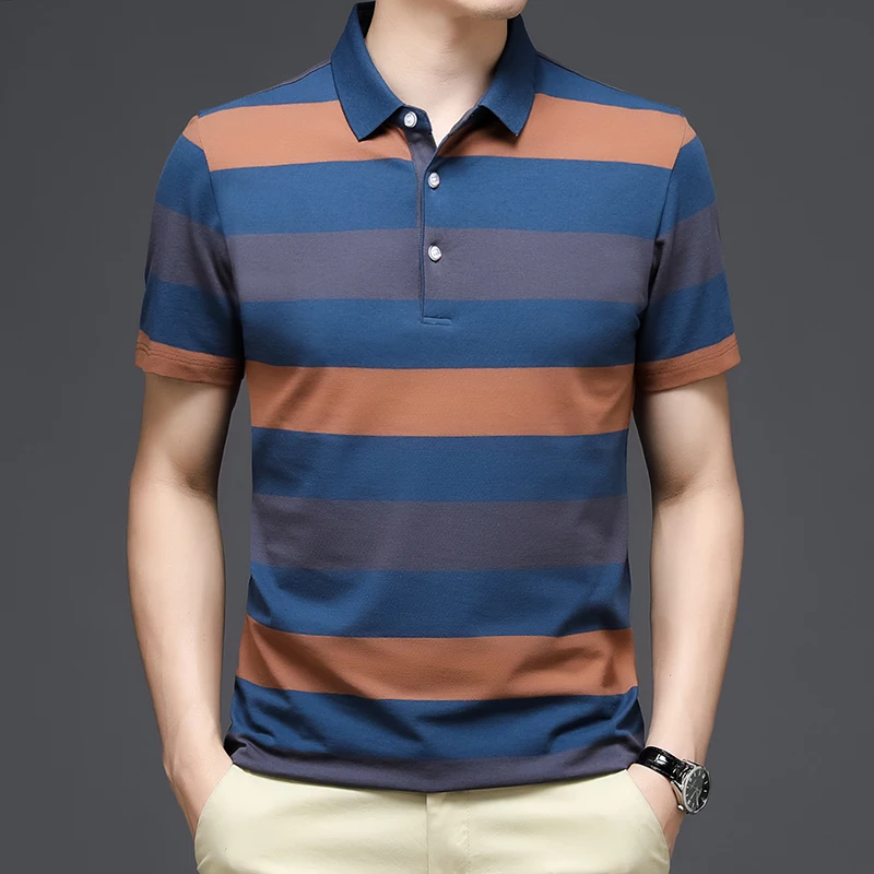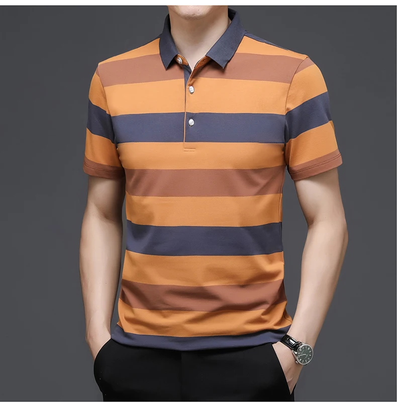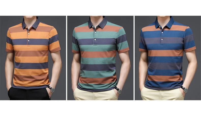 Мужская футболка-поло, с коротким рукавом, приталенная, лето, футболка в полоску, T1053