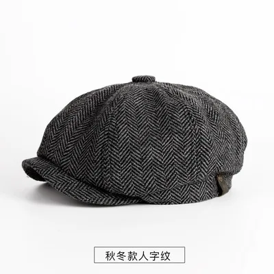 Ретро весенне-осенняя повседневная шерстяная восьмиугольная шапка м...