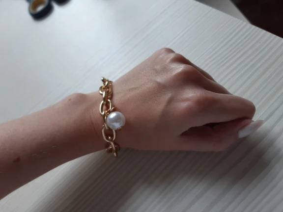 Оказалась самая удачная покупка из всей бижутерии. На запястье 15 см - отлично. Удобно застегивать, красиво ниспадает, но излишне не болтается. По срокам - за что-то доплачивала, чтобы быстрее пришло, в итоге затем переоформила объединенную посылку в пункт выдачи - все пришло за 2 недели в СПб, хотя срок стоял 60 дней. А что, так можно было?)) По весу конечно очень чувствуется, что это бижутерия, но зато носить легко) Смотрится благородно, изящно. Вопрос к производителю - почему застёжка другого цвета?) На фото никак не могла поймать, но в реале очень разные оттенки метала - браслет типа из розового золота, а застёжка из жёлтого) Выглядит вцелом дороже своей стоимости. Можно считать удачной покупкой.