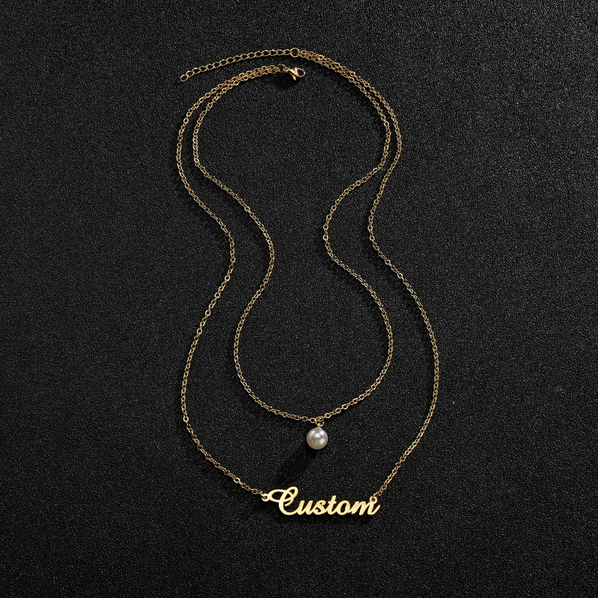 Goxijite пользовательское имя жемчуг Слои ожерелье для женщин Персонализированные 2 Слои s табличка колье Элегантные для женщин, ювелирное изделие, подарок