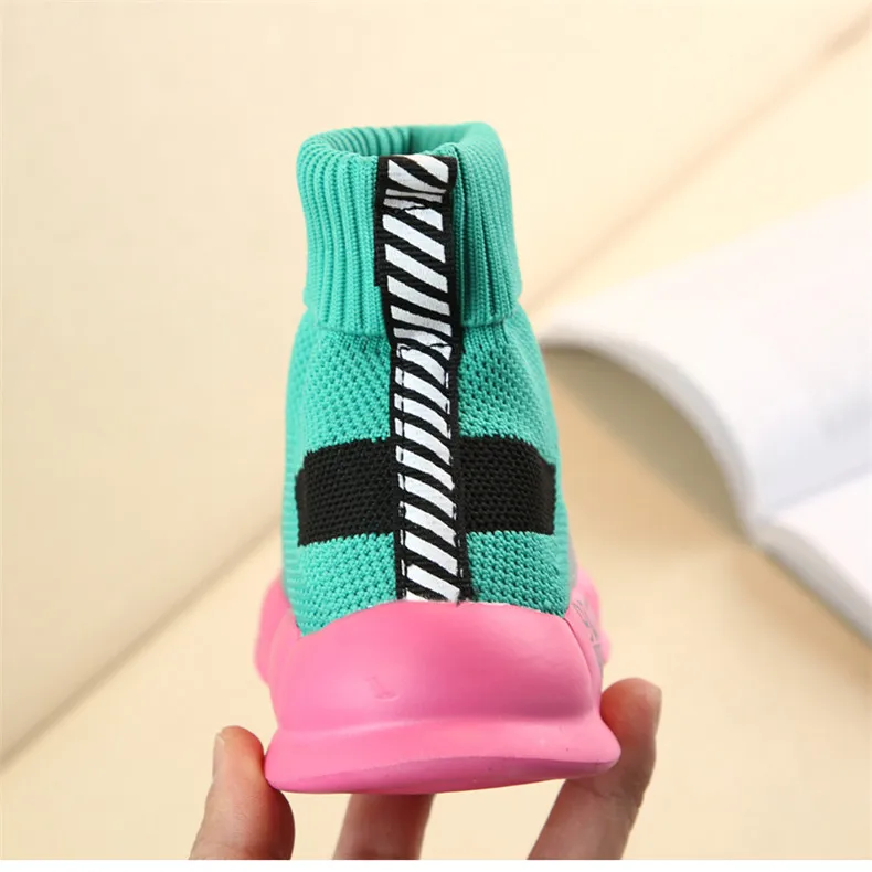 Детские кроссовки для девочек, повседневная обувь для девочек, без шнуровки, дышащие детские носки, повседневная спортивная обувь для девочек на осень, 2022