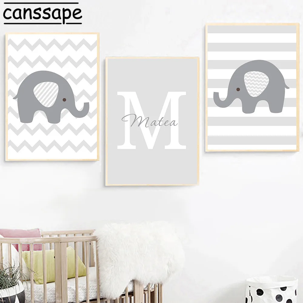 Детская Wall Art изображением алфавита из плотной ткани пользовательское имя плакаты, постеры плакаты слона фотографии животных на стену, декор для детской комнаты настенный Декор