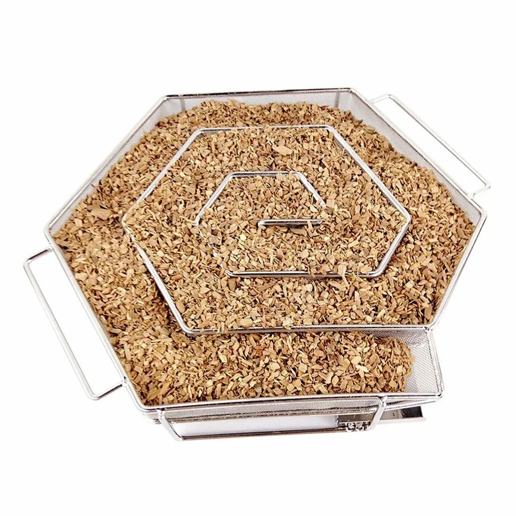 Сетка для барбекю из нержавеющей стали, шестигранная коробочка для курения, генератор холодного дыма для использования на открытом воздухе, для медленного запекания, аксессуары для курения