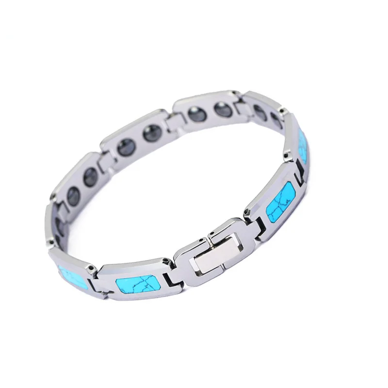 Модные дизайнерские украшения голубой бирюзовый браслет из карбида вольфрама для мужчин Здоровый Магнитный голов души с терапия мужские браслеты