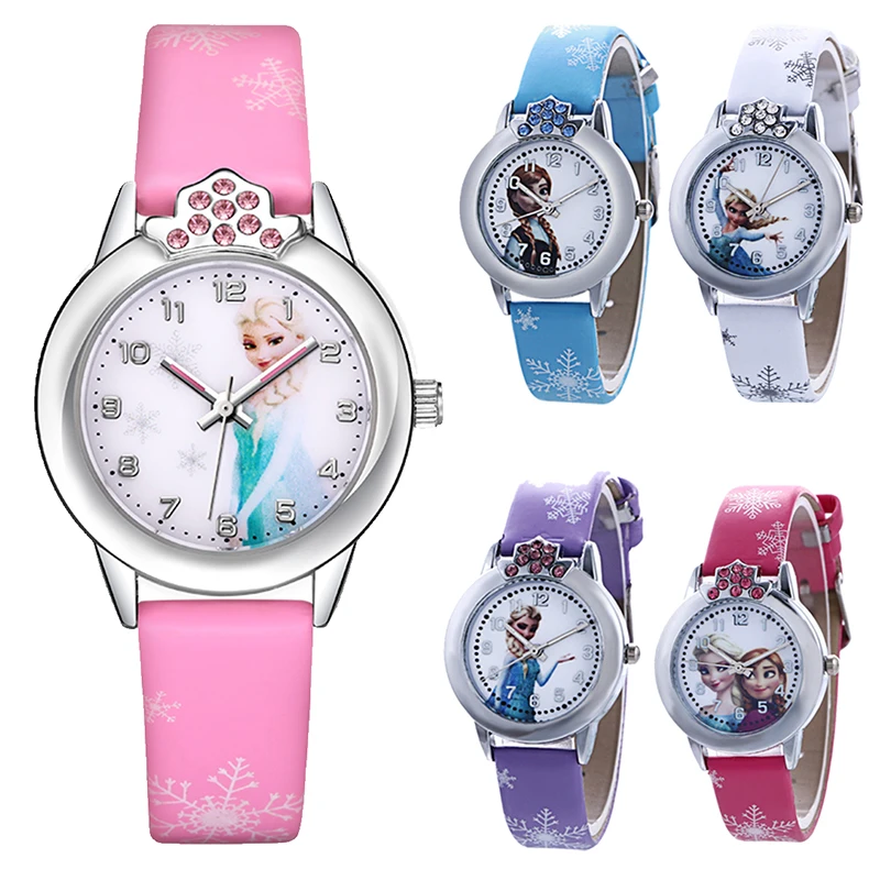 Оригинальный Дисней Холодное сердце для девочек из 2 вещей, часы студент стильная футболка с изображением персонажей видеоигр аниме Рисунок Эльза платье принцессы Дети Кварцевые часы детские подарки на день рождения