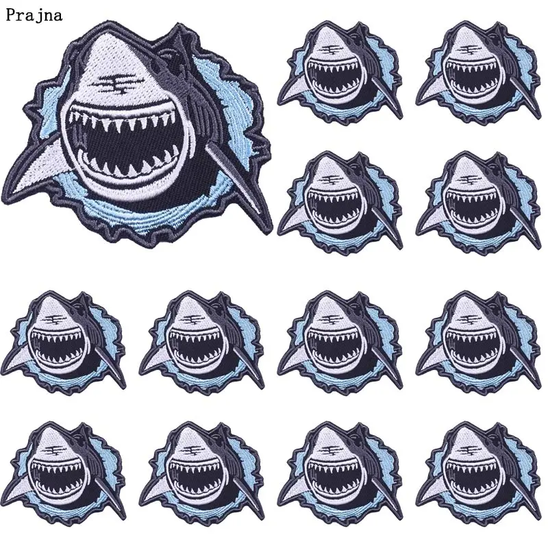 Праджня 10 шт.; Оптовая продажа; Детское нижнее белье с изображением акулы вышитые нашивки на одежду DIY нашивка в стиле панк гладить на патчи для одежды наклейки значки панка
