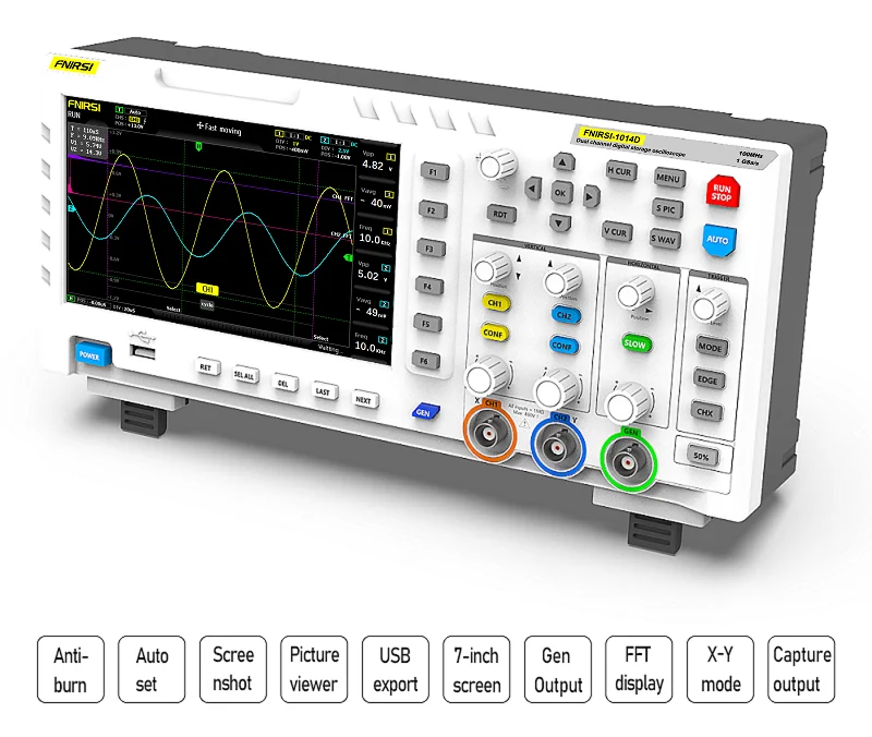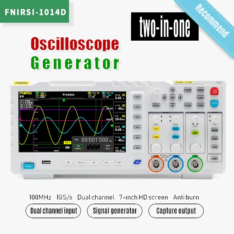 Это два в одном осциллографе и генератор сигналов. Он имеет комплексные функции и высокую практичность. Это экономичный двухканальный Настольный осциллограф для индустрии технического обслуживания и НИОКР. Осциллограф имеет частоту дискретизации в реальном времени 1GSa / s и аналоговую пропускную способность 100 МГц * 2; Полная функция триггера (однократное/нормальное/автоматическое), как для периодического аналогового сигнала, так и для aperiodic цифрового сигнала может быть использован свободно; Встроенный генератор сигналов DDS и оригинальный выходной сигнал в отрасли (@ 2.5vpp), Все шаги частоты сигнала-1 Гц, поддержка 14 видов стандартного функционального сигнала и настраиваемого сигнала, измельчение выходного устройства захватывает часть или всю часть сложных сигналов, измеренных осциллографом как выходной сигнал генератора сигнала, который может хранить до 1000 индивидуальных сигналов отключения; Встроенный модуль защиты от высокого напряжения может выдерживать Непрерывное напряжение до 400 В, не беспокоясь о ДТП при сжигании осциллографа, вызванном тем, что датчик не перемещается на 10x шестерню. Большой режим горизонтальной прокрутки, который может контролировать медленные изменения уровня; Оснащен эффективной одной кнопкой авто, которая может отображать измеренную форму волны без утомительной регулировки; дисплей высокой четкости ЖК-дисплей с 7-дюймовым 800*480 разрешение; Курсором благодаря функции измерения, при ручном чтения амплитуду и частоту параметры, Не нужно считывать фоновые весы и количество, и не нужно конвертировать, чтобы напрямую Получить пик до пика и частоты, чрезвычайно удобная функция захвата экрана и хранения сигналов, встроенная память объемом 1 Гб, может хранить до 1000 фотографий с экрана + 1000 групп данных волноводной формы, Процесс хранения прост и быстр, сохранение текущей формы сигнала одним щелчком, отсутствие громоздких подсказок и выбор для сохранения текущей информации, очень удобный; Мощный менеджер изображений формы волны, поддержка просмотра эскизов, просмотр, просмотр подробной информации о функциях поворота страницы, удаления и увеличения формы волны, Уменьшение и перемещение удобны для вторичного анализа. Фюзеляж оснащен интерфейсом USB, который может быть подключен к компьютеру для реализации совместного использования собственных фотографий экрана и компьютера, что удобно для вторичного анализа; функция графического дисплея Li Shayu может использоваться для сравнения и определения амплитуды, частоты и фазы двух групп сигналов; Функция просмотра FFT может оценить гармонический компонент сигналов; Функция графического дисплея Li Shayu может использоваться для сравнения и определения амплитуды, частоты и фазы двух групп сигналов;