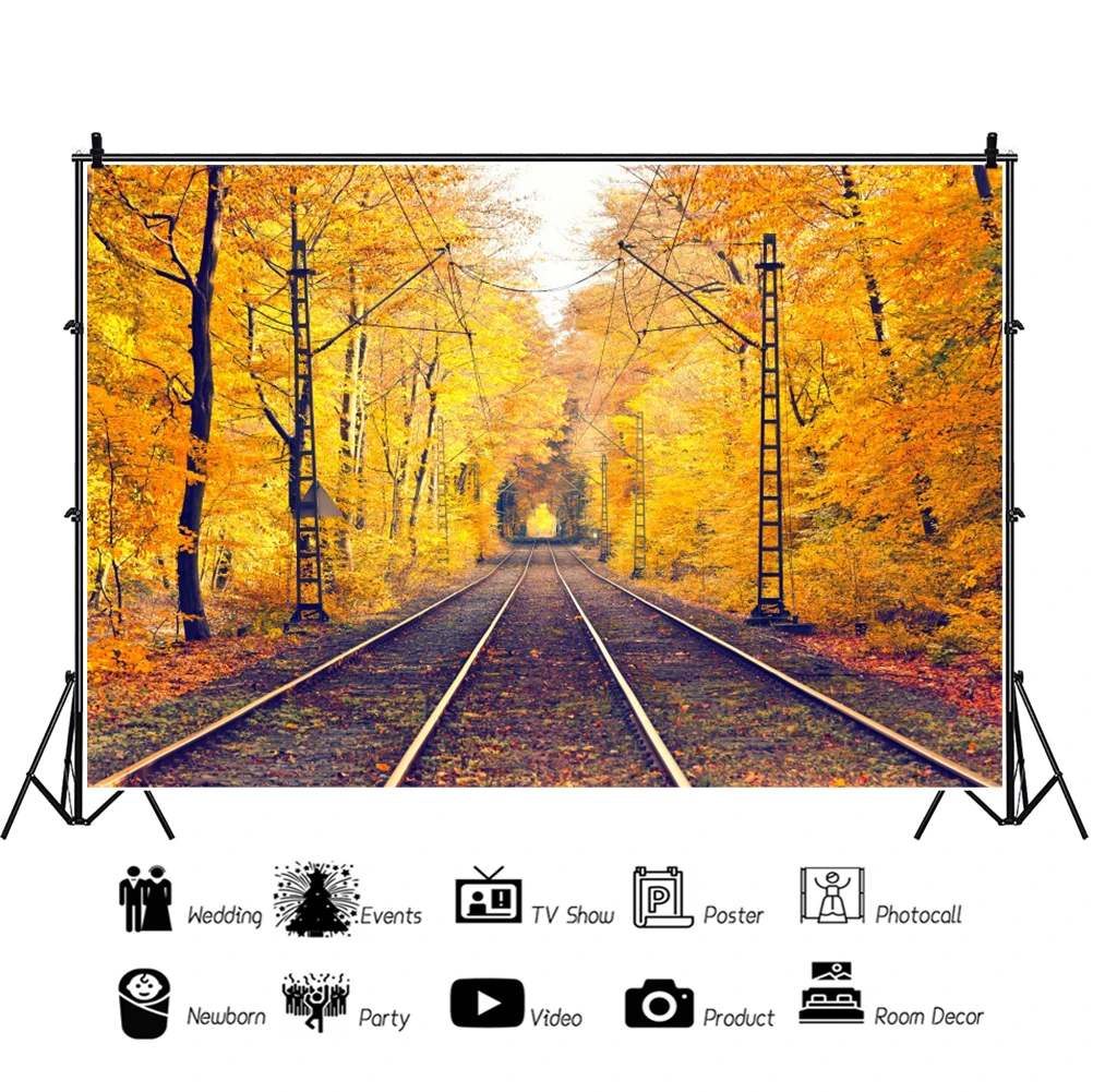 Laeacco осенний старый винтажный железная дорога Золотые листья задний фон для фотосъемки ребенка портрет на заказ фотографические фоны