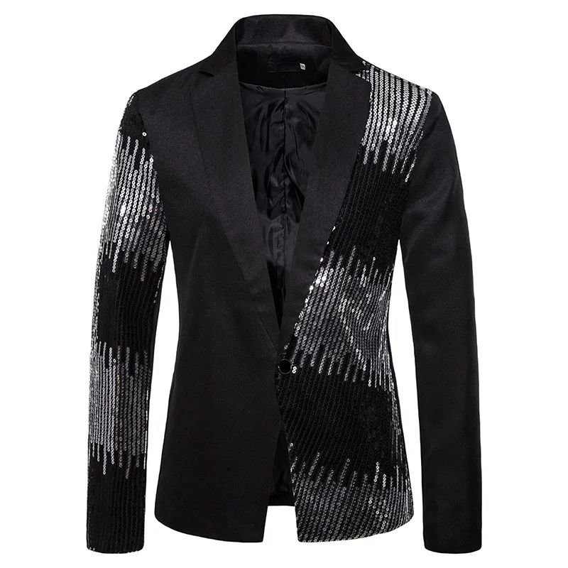 Блестящий черный блестящий пиджак, Мужской приталенный пиджак на од...